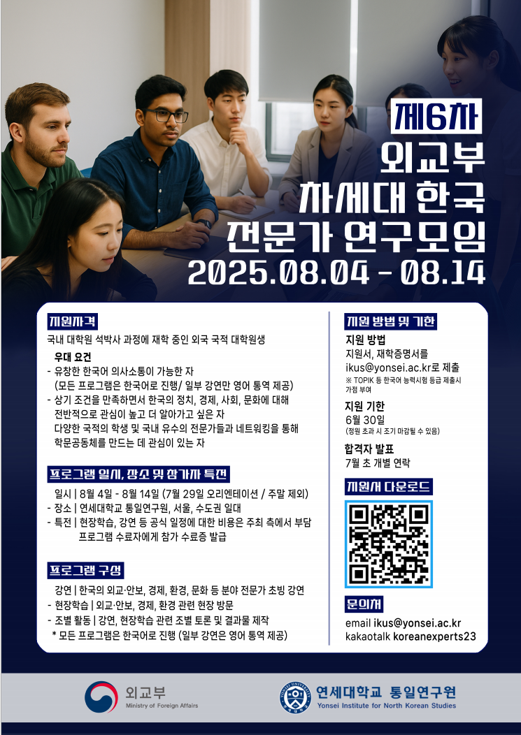 외교부에서는 차세대 지한 전문가 양성을 위하여 국내 석박사 과정에 재학중인 외국인 유학생 대상으로 연구모임을 운영중이오니 많은 관심 바랍니다.