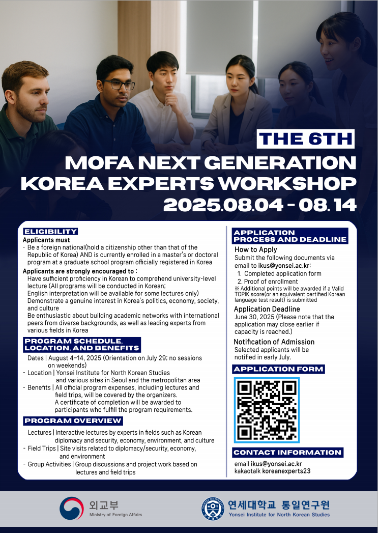 - 장소: 연세대학교 통일연구원 등 서울 및 수도권 일대